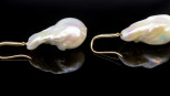 Lot Description:Baroque pearl, diamond & 9ct yellow gold earrings