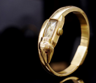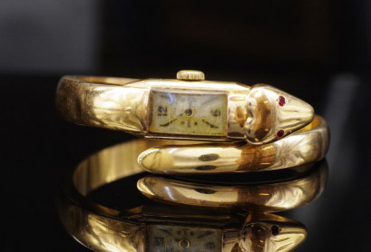 Lot Description:18ct rose gold Snake bangle cocktail watch
