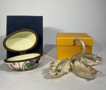 Lot Description:An Old Tupton Ware Floral Enamel Egg Trinket Box & Best Pysanky Bejeweled Enamel Swan Trinket Box