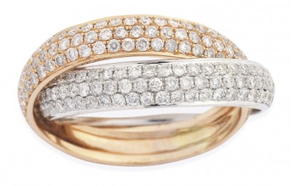 The interlocking bands, each pave with round brilliant cut diamonds totalling 2.23cts, in 18ct rose and white gold, ring size L-M. -
