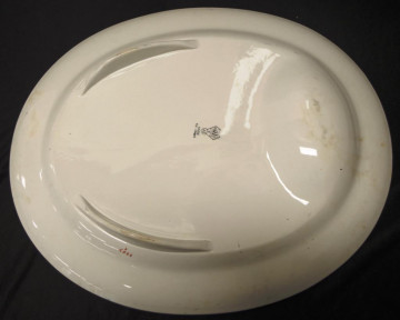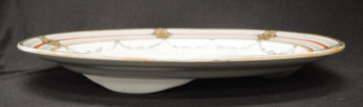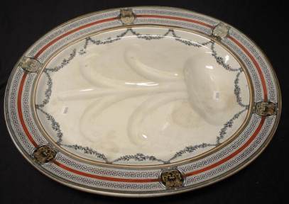 marked to base for circa 1878, makers BP Company, decorated border to platter with reservoir to centre, (length 50cm approx). -