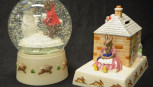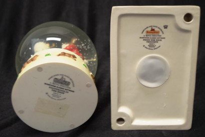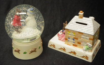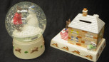 'Penny for your thoughts', 13.5cm high approx, together with a snow globe, 'Footprints in the Snow' -