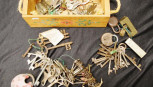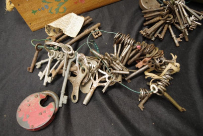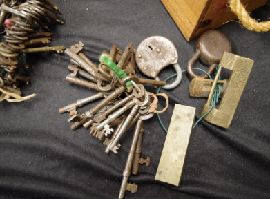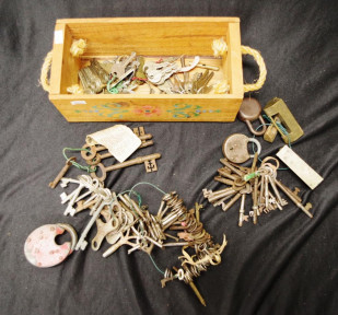 comprising many old furniture keys, clock keys, etc; and old padlocks, and Chinese brass locks. -