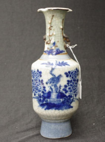 Lot Description:Antique Chinese crackle glaze blue & white vase