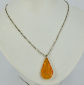 Lot #337 - An Amber Pendant And Silver Box Chain