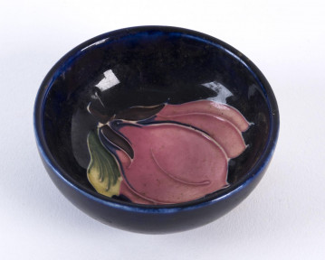 Lot Description:MOORCROFT “Magnolia” pattern dish on blue ground, circa 1950