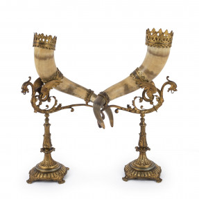 Lot Description:A pair of antique French table ornaments, horn on well cast ormolu stands, late 19th century