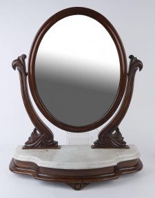 Lot Description:An antique English toilet mirror, carved mahogany and marble, 19th century