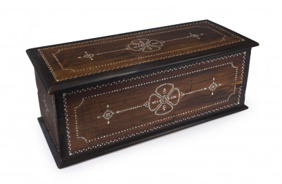 Lot Description:An Indo-Portuguese lift-top box, stained hardwood inlaid with bone and pearl shell, 19th century