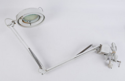 Lot Description:Inspect-A-Gadget industrial style bench mount magnifying lamp, mid to late 20th century