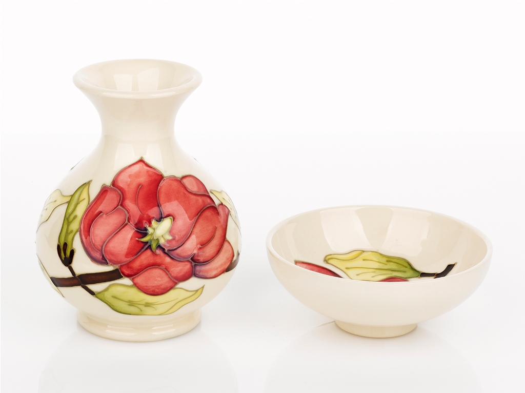 Lot Description:William Moorcroft Magnolia Pattern Vase and Bowl