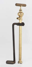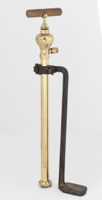 Lot Description:PUMP: A early brass hand pump with bulbar shaft and oak handle
