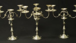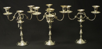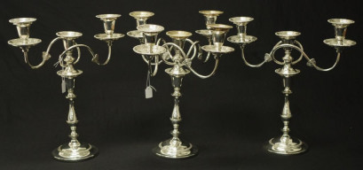 Lot Description:Three Reproduction Old Sheffield Plate candelabra