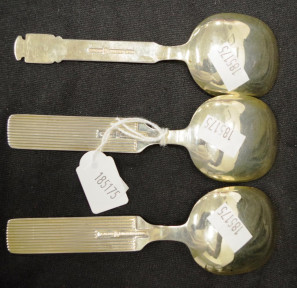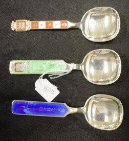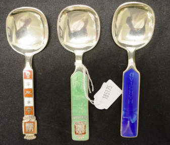 Lot Description:Three Norwegian silver gilt & enamel caddy spoons