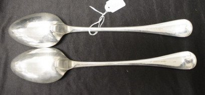 long serving/basting spoons, each marked, and monogrammed, (length 30cm approx, each). -