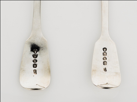 Lot #186 - William Stroud - Pair of Sterling Silver Fiddle Pattern Table Spoons