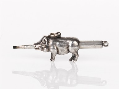 in the form of a pig, pencil extending from mouth and tail, stamped 'S. Mordan and Co.', with registration marks July 1880 -
