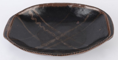 Lot Description:HAROLD HUGHAN studio pottery fruit bowl with brown and black glaze