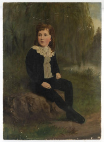 Untitled (Boy on a rock with ferns and weeping willow in the background)