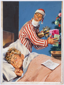 image for December edition showing a humorous Christmas Eve scene, 50x37cm, on board, c.1950s. -