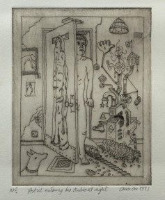 Lot #1150 - Chris Orr - Artist entering his studio at night
