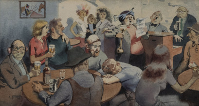 signed lower left “R. Young”, Five Ways Galleries label verso, -