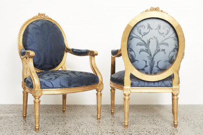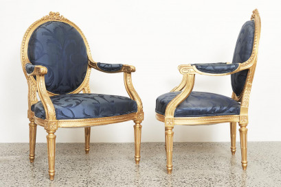 Lot Description:Pair of Louis XVI Style Giltwood Armchairs