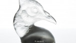 clear and frosted glass, intaglio 'R. LALIQUE' and numbered, small chips to feathers, seated in a chromed metal mount