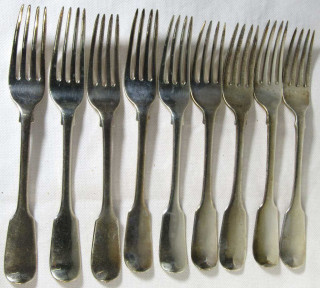 Lot #20 - Nine antique sterling silver fiddle pattern forks