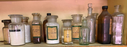 Lot Description:A Collection of Clear Glass Apothecary Bottles