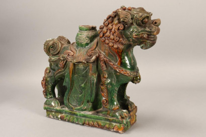 Lot Description:Ex-Sotheby's Large Chinese Qing Dynasty Sancai Temple Dog, 18th Century Sancai