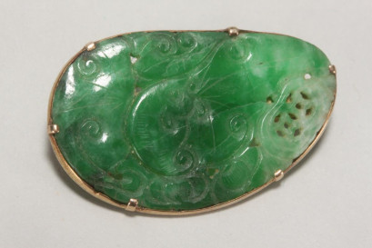 Lot Description:14ct Yellow Gold and Jade Brooch