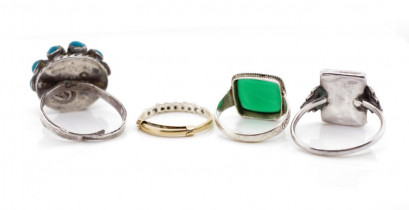 Lot Description:Art deco 9ct yellow gold ring and three other silver rings