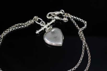 Lot Description:Silver heart locket and blecher chain