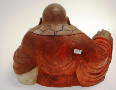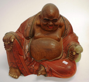 Lot Description:Large carved timber laughing Buddha "Hotei"