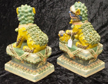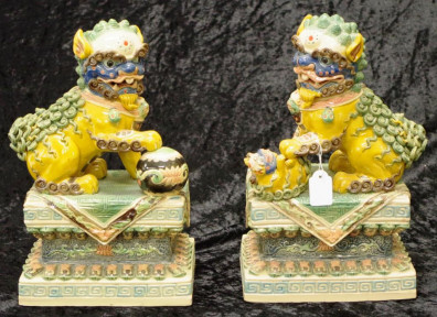 Lot Description:Pair Chinese painted ceramic Temple Dogs