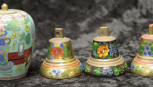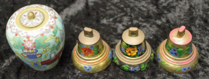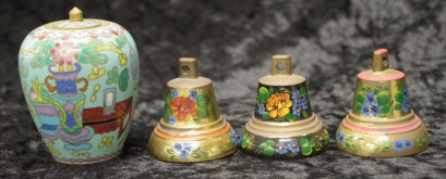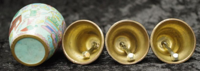 Lot Description:Three handpainted floral brass bells