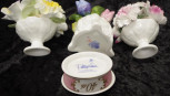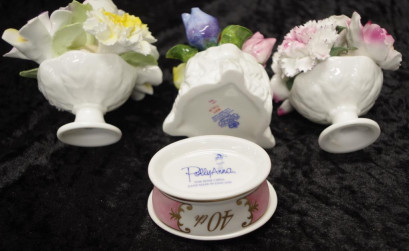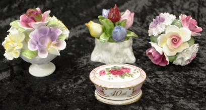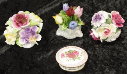 including: Aynsley 'May Tulip,' (height 9cm approx); Aristocrat 'Roses,'and 1 other; together with a Pollyanna rose decorated lidded trinket box. -