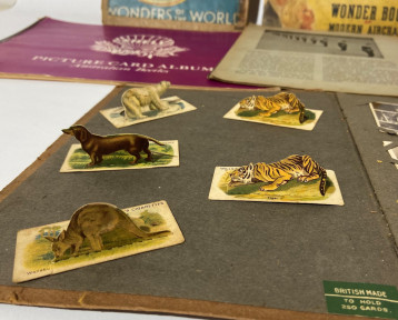 including Cigarette cards, Wills Animals + De Reszke Real Photographs + Wonders of the World Picture Stamp Albums + Shell Picture Card Album Australian Beetles etc, condition varies -