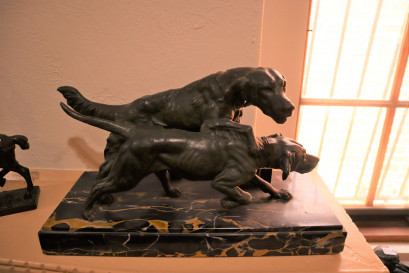Lot #109 - Two bronze hunting dogs on marble base signed Clovis Masson