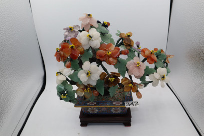 Lot #342 - Cloisonne and jade and agate miniature bonsai plant