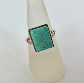 square-cut turquoise stone. Size M (adjustable). Weight 2.7g. -