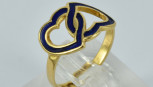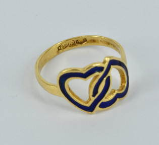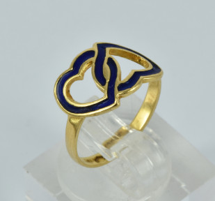 two interlocking hearts in Italian 18ct yellow gold. Hallmarked. Size, H. Weight, 2.0 grams. -