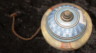 Lot #1316 - Early sterling silver & blue guilloche table bell