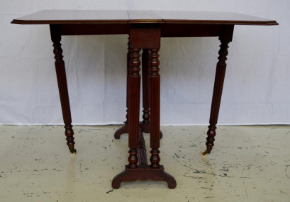 with turned / reeded ends and stretcher, 106cm wide (open), 16cm wide, 71cm high approx -