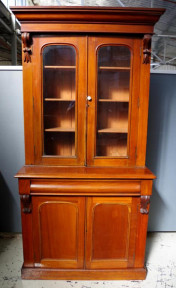 with 2 glazed doors above 1 drawer and 2 timber panel doors, 106cm wide, 47cm deep, 213cm high approx -
