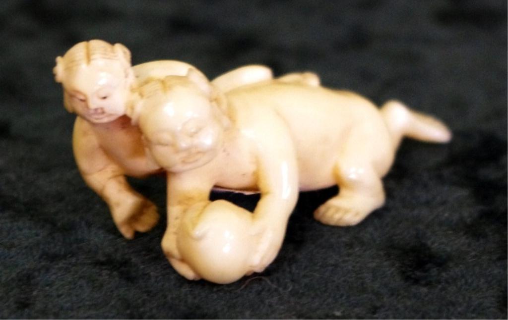 Lot Description:Japanese carved ivory netsuke - Babies crawling