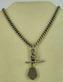 Lot Description:An Antique Sterling Silver Albert Chain With Locket Fob