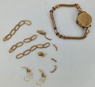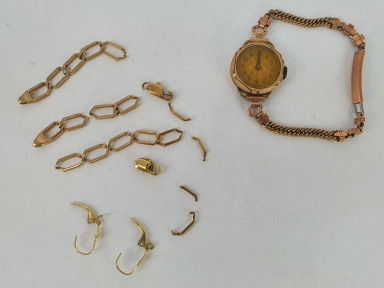 Lot Description:An Early 9ct Gold Ladies Bracelet Watch and Scrap Gold