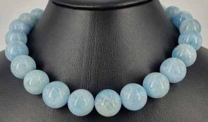 Lot Description:A 16mm Aquamarine Bead Necklace